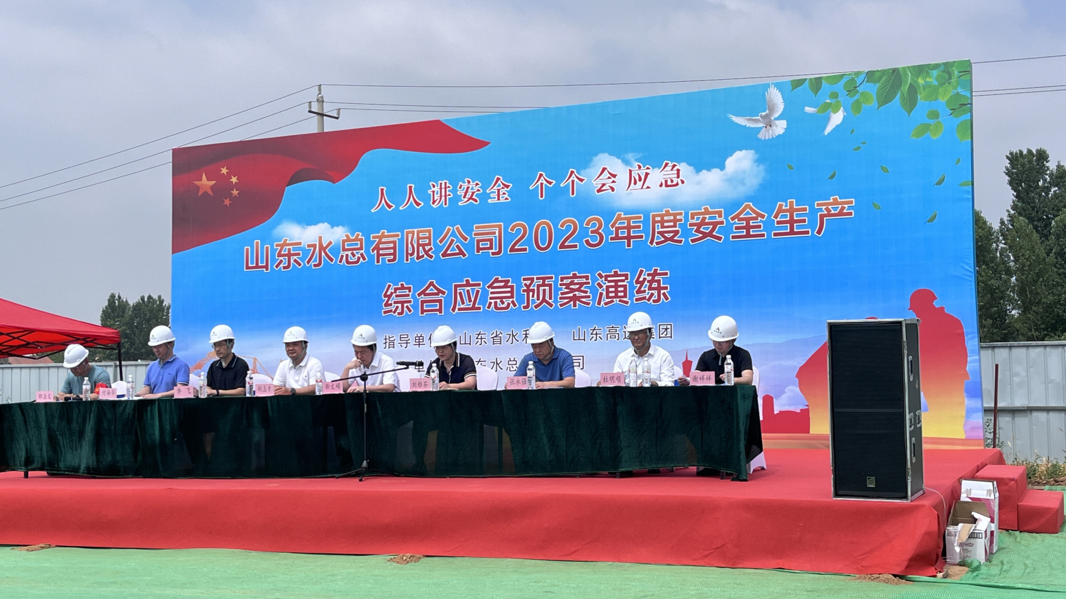 6月20日上午,公司在泗水县岳陵拦河闸施工现场开展2023年安全生产综合应急演练。省水利厅监督处副处长刘雅芬、泗水县水利局局长张永强、副局长杜明顺,股份公司安全总监荆玉才、安全管理部部长李飞等领导莅临现场观摩指导,公司党委委员、副总经理付海华主持演练,党委副书记、总经理靳文硕致辞。