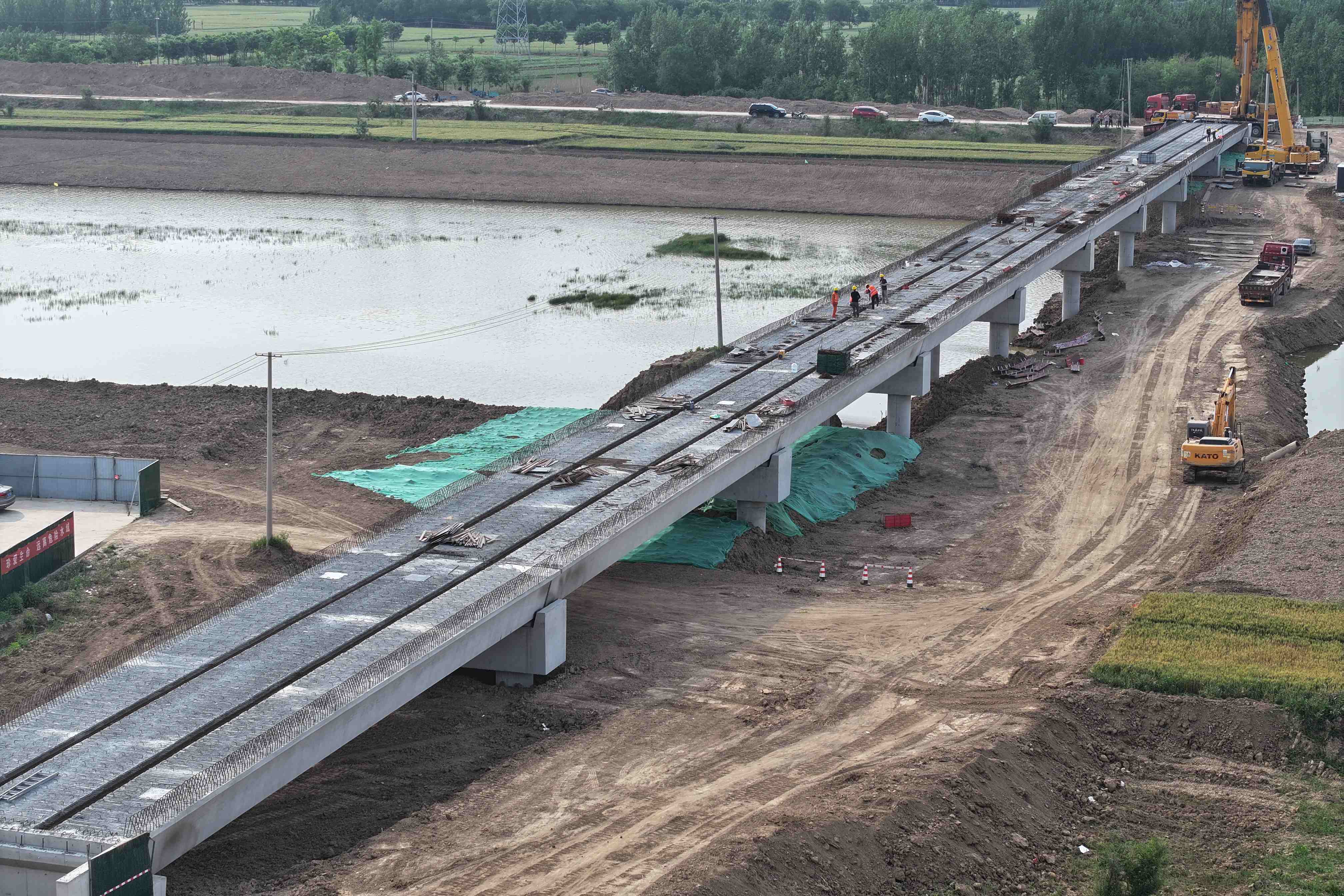5月25日,随着最后一片预制箱梁精准落位,德惠新河综合治理工程二期项目霍家桥箱梁架设任务圆满完成,项目建设取得了重要的阶段性胜利。