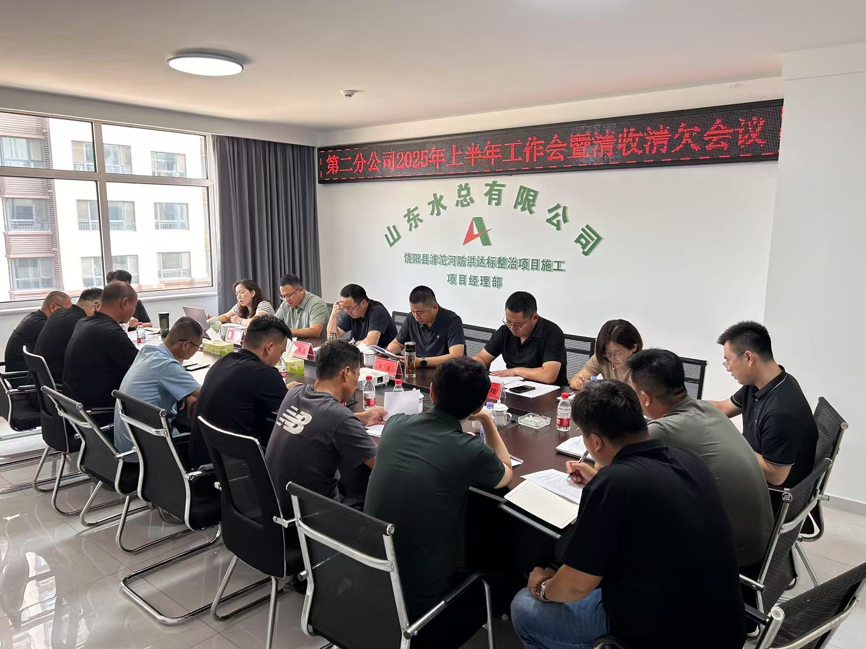 8月1日,第二分公司在饶阳滹沱河项目部召开2025年上半年工作会议暨清收清欠会议。此次会议全面总结了上半年工作成果,并对下半年重点工作以及清收清欠任务进行系统部署,为第二分公司全年目标的实现奠定坚实基础。