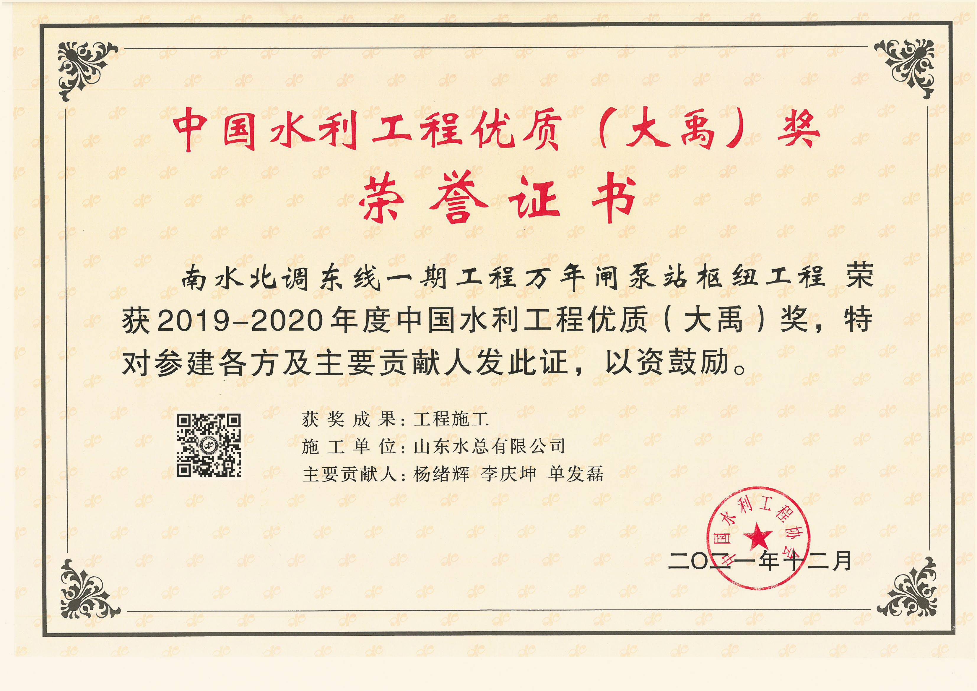 南水北调东线一期工程万年闸泵站枢纽工程(大禹奖)