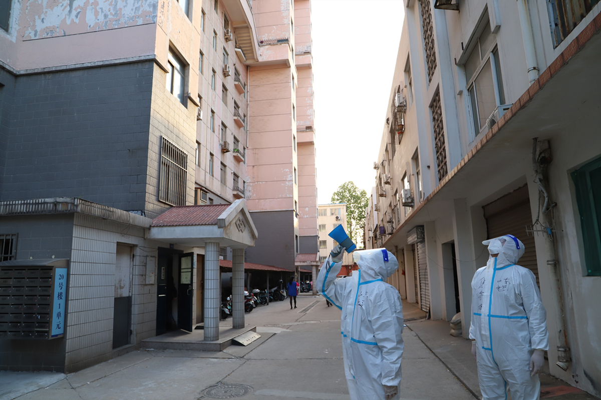 由人力资源部阴冠一、审计部石天禹、机料管理部李景仰、第二分公司赵书宇、第三分公司焦鲁坤、第六分公司魏中坤组成的突击队,在急难险重任务中冲锋在前,按照街道办要求以二级防护状态投入到此次疫情防控大筛查中。面对拥有20栋楼,2000多人的大社区,他们合理分工,有条不紊的开展扫码备案、维护秩序、挨家挨户敲门等工作。志愿服务从下午五点一直持续到晚上十一点,汗水浸透了防护服里面的衣服,脸上却透露出不畏风险、勇往直前的信念。