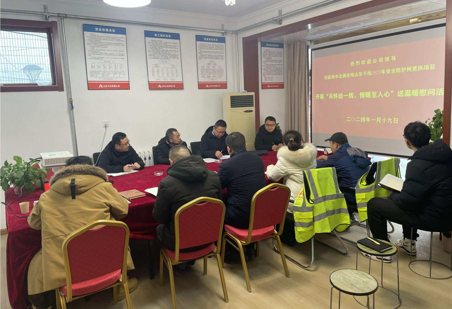 1月19日,公司党委委员、副总经理袁英杰,工程管理部相关人员一行到南水北调东线山东干线2023年安全防护网更换项目,开展“关怀送一线  情暖至人心”送温暖慰问活动